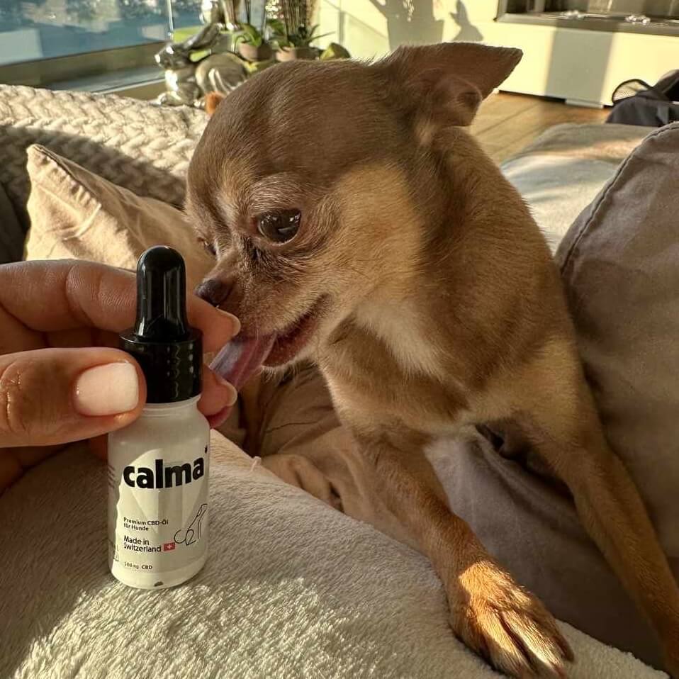 CBD oil for dogs is safe as long as it comes from a reputable manufacturer like CALMA CBD and is given at the recommended dosage. The CBD oil for dogs from CALMA was developed specifically for dogs . Our drops only contain CBD from flowers grown under the highest quality standards for hemp in Switzerland and high-quality MCT oil, which already has many health benefits. Our CBD oil for dogs also contains 0.0% THC and is free of terpenes , so you can be sure that your four-legged friend will only experience positive effects from taking it. However, it is important to speak to a veterinarian before use, especially if your dog is taking medication or has any health problems.